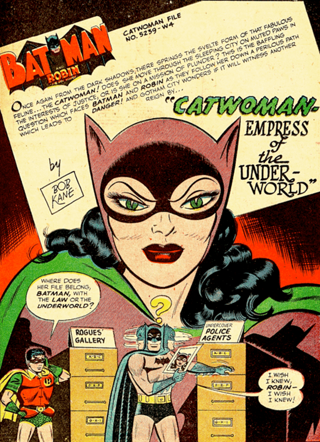 Catwoman es sencillamente una de las más añejas y mejores villanas en la historia del cómic. Creada por Bob Kane y Bill Finger en 1940, el personaje goza de una larga y exitosa trayectoria que le ha valido su pasaje al cine, al mercado de juguetes y los videojuegos.