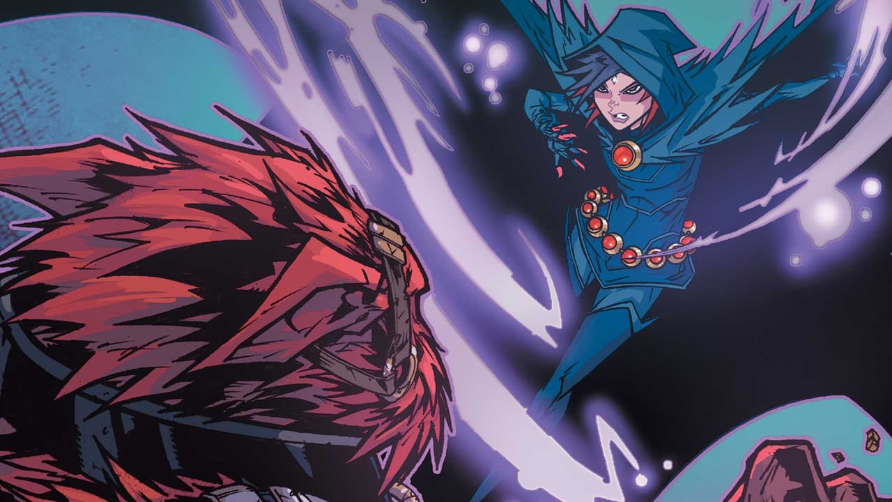 Raven, mitad demonio y mitad humano, creció en la dimensión alternativa de Azarath. Ahí aprendió a dominar sus emociones, para así tener control sobre las habilidades heredadas de su sádico padre.