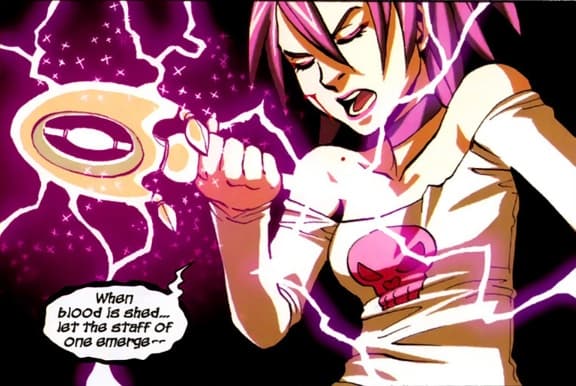 Nico Minoru forma parte de Runaways y puede lanzar magia gracias al antiguo Bastón de Uno, con el cual puede invocar cualquier hechizo imaginable.