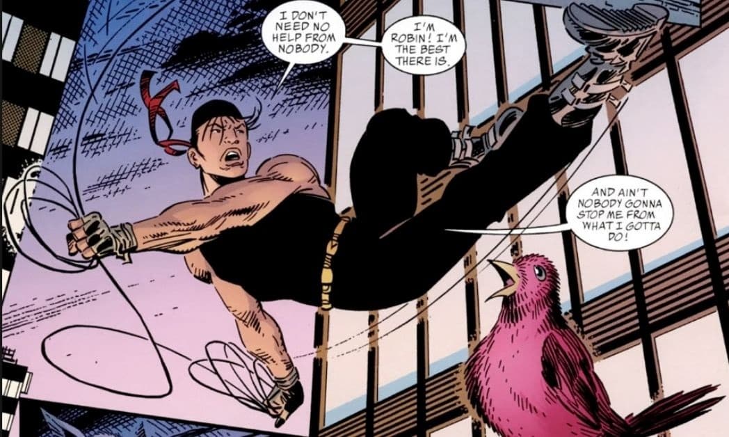 Así es, el legendario escritor de comics de Marvel también hizo su versión de los superhéroes del Universo de DC, oficialmente sus creaciones pertenecen a la Tierra-6 y este Robin es un huérfano con gran habilidad en artes marciales.