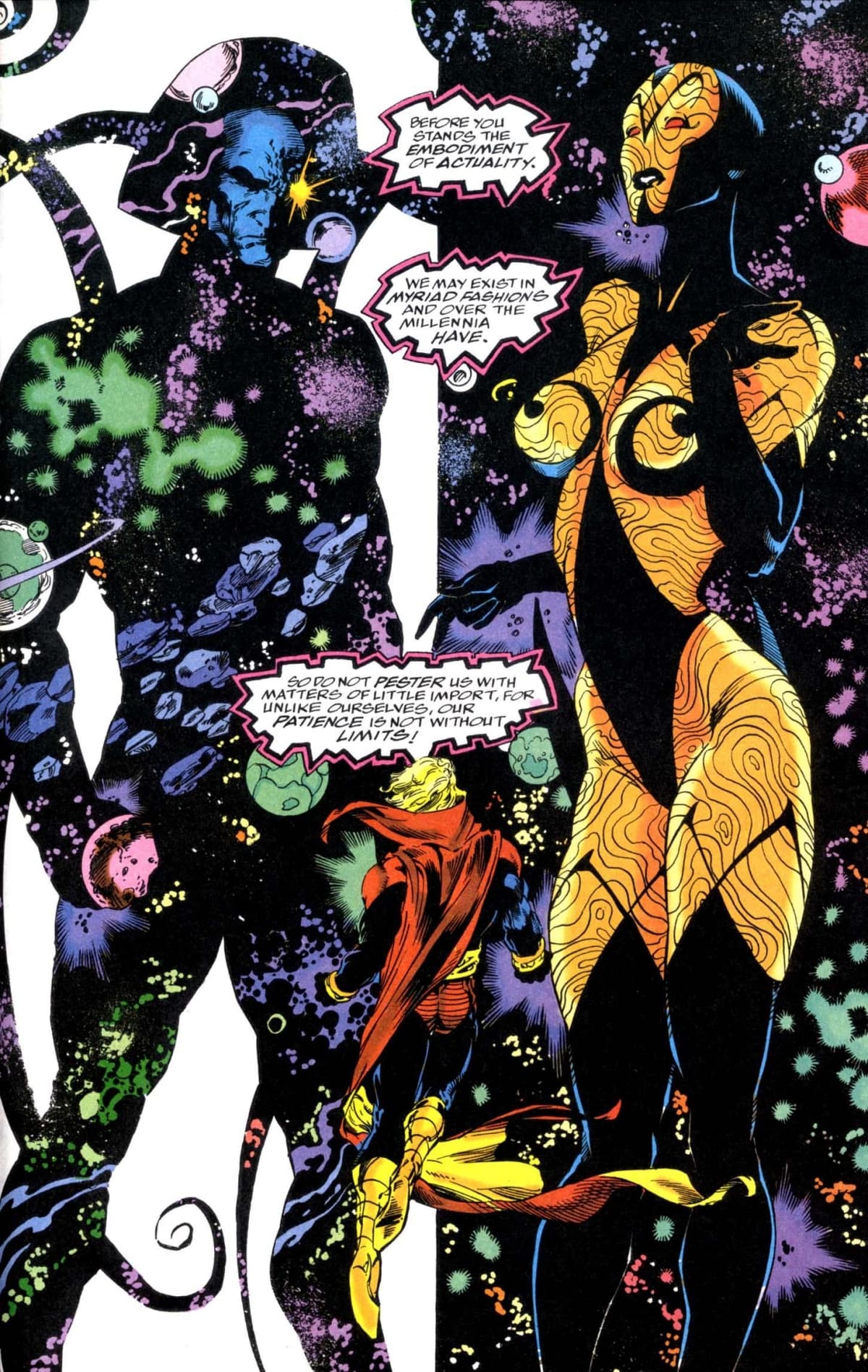 Es prácticamente un mediador de todos los sucesos cósmicos del multiverso, fue quién le ordenó a Adam Warlock que no podía usar el guantelete del infinito.