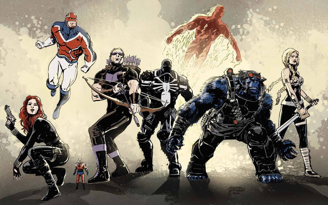 El equipo de los Secret Avengers estaba conformado por Beast, Black Widow, Hawkeye, Valquiria, Agent Venom, la Antorcha Humana y Ant Man.