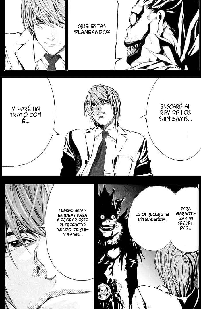 Light le revela que experimentar todas estas muertes le dará el tiempo suficiente para encontrar al rey de los Shinigami y proponerle un trato: prestarle su inteligencia para reconstruir su reino.