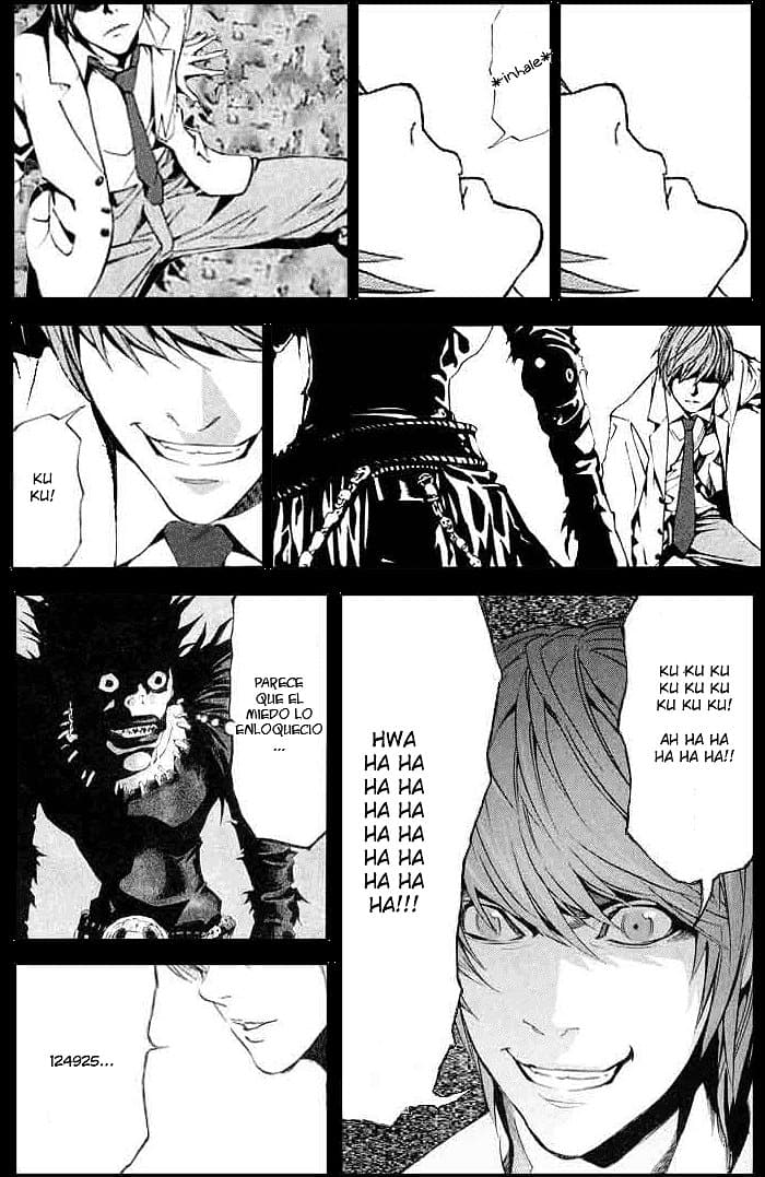 Light despierta otra vez, recuerda haber matado a 124,495 personas en total, y, comienza a reír. Ryuk piensa que finalmente ha enloquecido, pero la cara de Light se transforma, adquiriendo la expresión de Kira.
