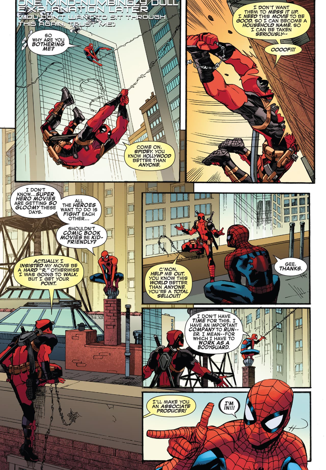 Spider-Man/Deadpool #6 fue publicado, y con él, el desparpajo y el humor que estos dos entrañables personajes traen consigo. En este issue, tras conocer la identidad de un nuevo villano, Deadpool se entera de que un estudio está produciendo una película sobre él, y busca la ayuda de Spidey con el fin de conocer más sobre la industria, ya que Spider-Man ha sido un gigante del (ficticio) séptimo arte desde hace mucho tiempo.