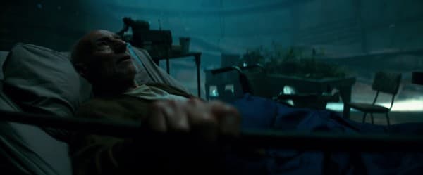 Logan no solo protege a la niña, sino que se encuentra de guardián de un ya viejo Charles Xavier.