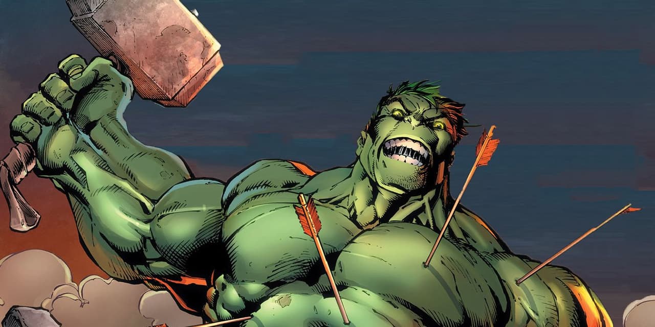 En el MCU, Hulk no es capaz de moverlo ni un milímetro; sin embargo, en Avengers Assemble #4, Hulk es controlado por Thanos y logra agarrar el pesado martillo para golpear a Thor contra el suelo.