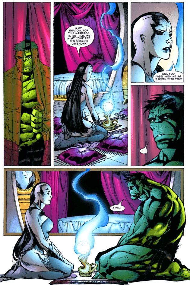 Uno pensaría que siendo un cómic que básicamente cuenta la historia de un gladiador que llega a ser rey, esta lista estaría llena de puros momentos de violencia. Sin embargo, el matrimonio de Hulk en Sakaar se merece una mención especial. Desde su llegada al planeta, Bruce Banner había permanecido con la forma de Hulk para protegerse. No obstante, su amor por Caiera the Oldstrong le permite bajar la guardia, y tener uno de los momentos más interesantes de toda la serie.