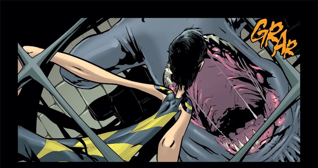 En Suicide Squad #5 del 2012, mientras intentaban sofocar un motín en Belle Reve, King Shark se come a Yo Yo. Lo peor es que más tarde se revela que Yo Yo nunca murió sino que estuvo meses dentro de King Shark, siendo devorado poco a poco por sus jugos gástricos.