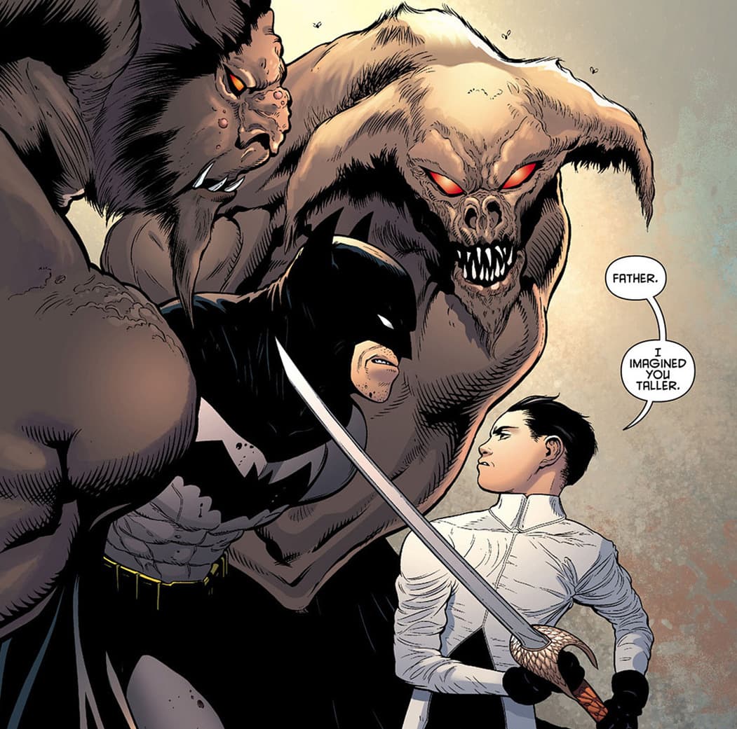 Damian conoció por primera ver a Bruce Wayne en una pelea entre él y su madre, Talia Al Ghul. Si bien posteriormente nos enteraremos de que siempre se preguntó quién era el hombre que le dio la vida y de dónde venía la simbología del murciélago, la primera frase que lanza, luego de tener a Batman al filo de su espada, es "Padre, te imaginé más alto". No pudo evitar sacarnos un sonrisa este mocoso insolente de 10 años que se atrevía a desafiar al mismísimo Batman.