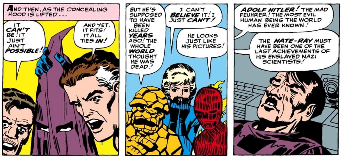 Después de una pelea, en donde tuvo que intervenir Nick Fury, desenmascaran al villano y descubren que es Adolf Hitler.