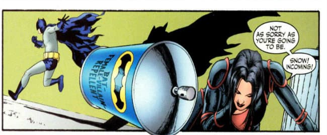 Ok... yo solo conozco el repelente contra insectos. Batman contó en la serie live-action de los 60 con un bati-repelente contra tiburones asesinos. Claro que eso ya quedó en el pasado y ahora lo ingenioso es un repelente contra villanas.