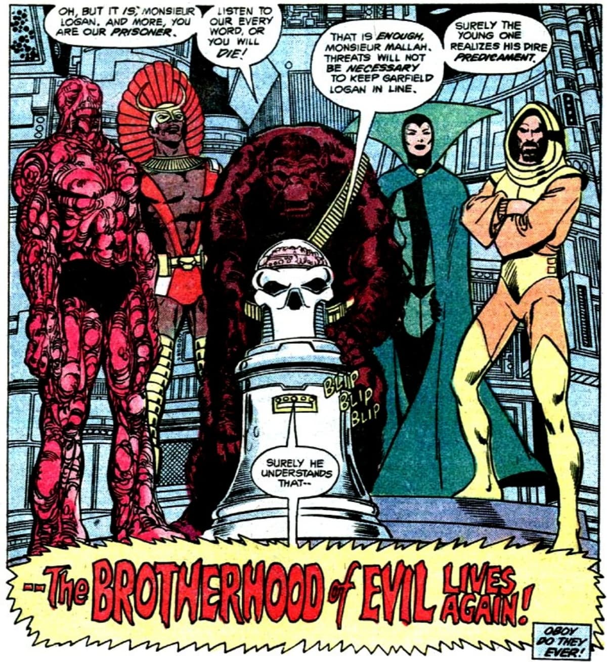 Enemigos de la Doom Patrol y los Teen Titans, The Brotherhood of Evil es un equipo conformado por Brain, su fundador y líder, Monsieur Mallah, Madame Rouge, General Immortus y Garguax.
