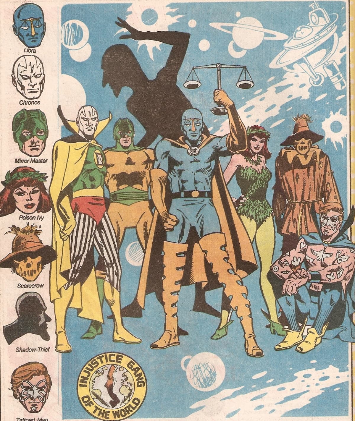 Hiedra Venenosa, El espantapájaros, Mirror Master, Cronos y Libra son algunos de los miembros fundadores de este equipo enemigo de la Justice League.