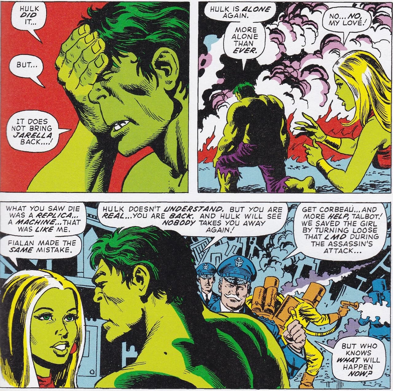 Por ejemplo, Hulk fue derrotado por la guerrera intergaláctica Jarella, su ex-esposa, luego de que él le transmitiera su energía de amor (dawwww!)