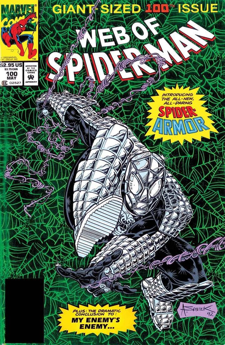 Existen varias versiones de este traje, pero en esta ocasión nos referimos a la utilizada por el arácnido en Web of Spider-Man Vol 1.