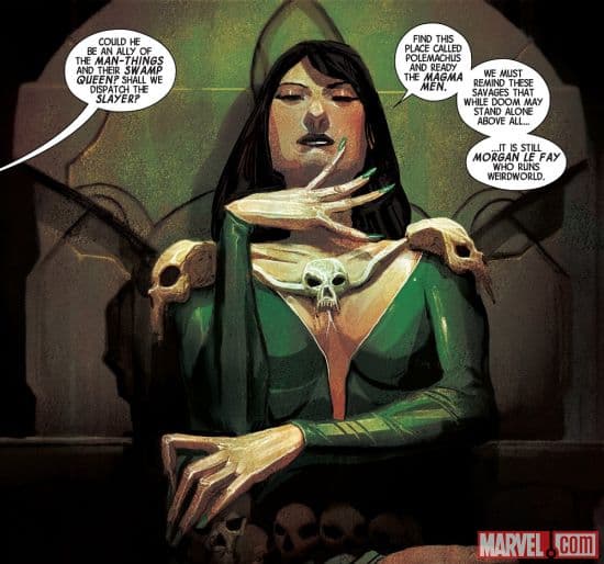 Ligeramente basada en el personaje mitológico del mismo nombre (al igual que Thor), Morgan Le Fay (el Hada Morgana de la Corte del Rey Arturo) es el personaje más antiguo en la lista, habiendo debutado en las páginas de Black Knight #1 (mayo, 1955) de Stan Lee y Joe Maneely. Como una de las hechiceras más poderosas de la Tierra y técnicamente inmortal, se pueden imaginar lo difícil de derrotar que puede llegar a ser. A lo largo de su carrera se la ha visto más frecuentemente con Spider-Woman y los Avengers. Cuando intentó transformar a la Tierra en una dimensión controlada por la magia oscura, los Avengers, Doctor Strange, Magnus el hechicero y Shroud tuvieron que unirse para poder derrotarla.