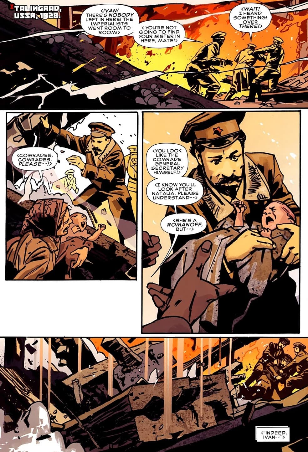En los cómics esto es diferente. En Shadows and Light Vol 1 una de las pistas que se nos da es que nació en 1928 (bastante más longeva de lo que aparenta) en Rusia, en el seno de una familia burguesa que está emparentada con los últimos zares.
