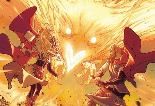 ¿Dos Thors? ¿Tres Thors? Mejor cuatro. Esto es lo que aparentemente pensó el realizador Jason Aaron que tras la introducción del tercer dios del trueno, War Thor, podría estar presentando un cuarto en las páginas de Mighty Thor #22. Este nuevo personaje se llamaría Ultimate Thor aunque no se ha confirmado aún su aparición en Ultimates 2 #100, book que también debutará en agosto. Intrigas, intrigas… falta mes y medio para saber la verdad.