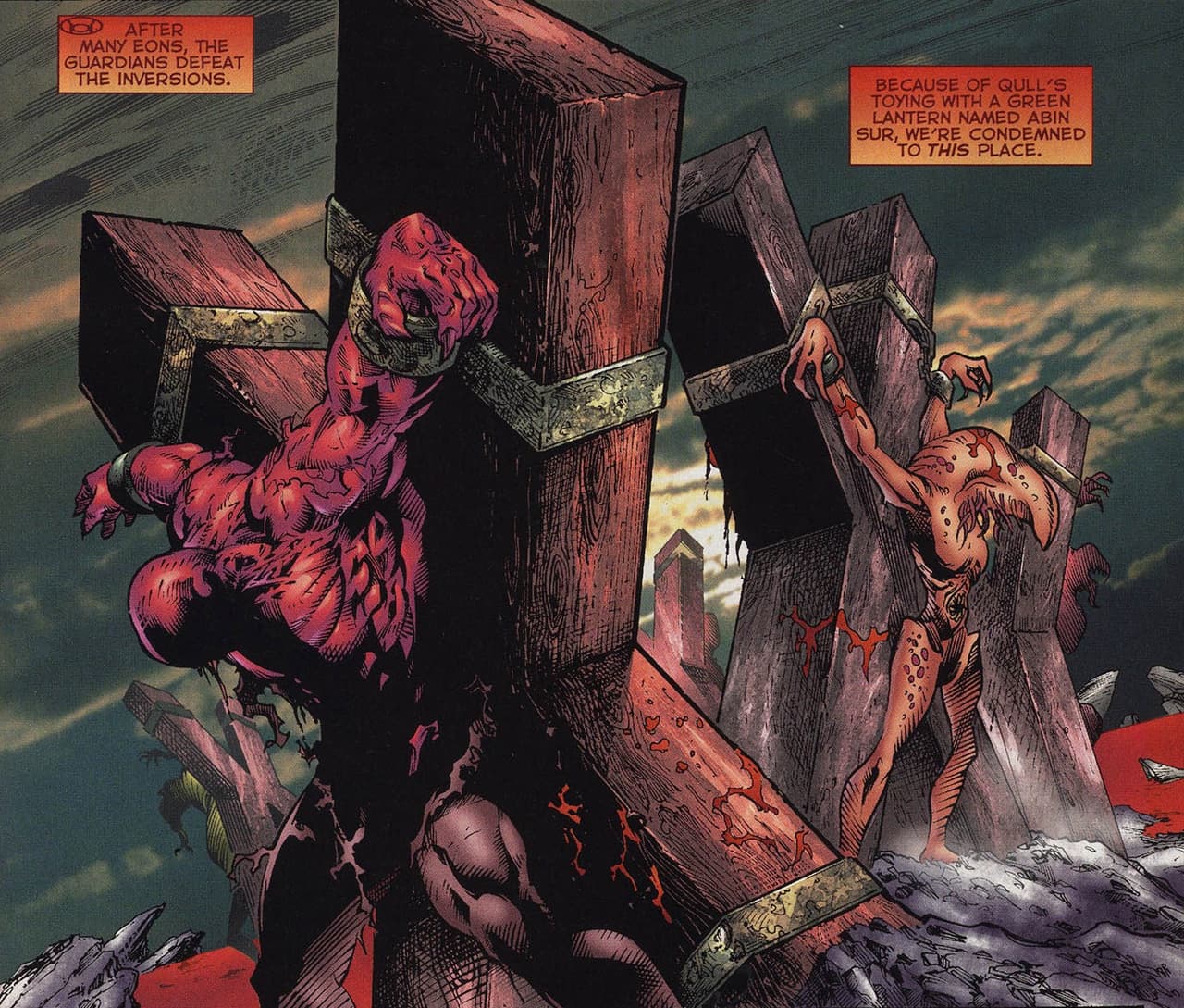 Atrocitus volvió a ser encarcelado en el planeta Ysmault gracias a los esfuerzos de Hal Jordan y Sinestro que lo derrotaron en el planeta Tierra, pero al cabo de un tiempo el villano descubrió que podía crear la batería de los Red Lanterns y, sacrificando a Qull, otro de los Five Inversions, se convirtió en el primer portador de la luz roja. Por supuesto, como líder su propio ejército, juró venganza y destrucción a los Guardianes del Universo, creadores de los Manhunters que masacraron a su planeta y a su familia. Y así es como, en el universo DC, las linternas rojas y las verdes serán eternamente enemigas.