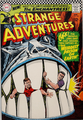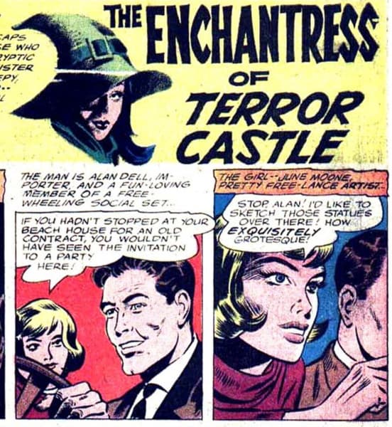 La de June Moone es una historia extraña, como todas las que podían leerse en el cómic Strange Adventures. Todo empezó durante una fiesta de disfraces en un antiguo y misterioso castillo, donde las estatuas cobran vida y no todo es lo que parece. June, que había asistido con su novio, se ve separada de él repentinamente y cae a través de un panel secreto en una pared que la lleva a una habitación escondida. Allí descubre todo tipo de criaturas extrañas, aparentemente dirigidas por una cabeza gigante con brazos que se encontraba sentada en un trono.