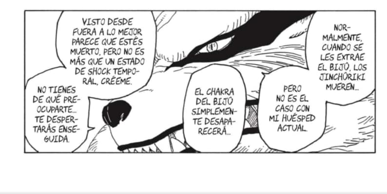 Kurama explica que normalmente, cuando se extrae el chakra del bijju, el jinchuriki muere, pero este no era el mismo caso, ya que su chakra simplemente desaparecerá, y Naruto solo se encontraba en estado de shock.