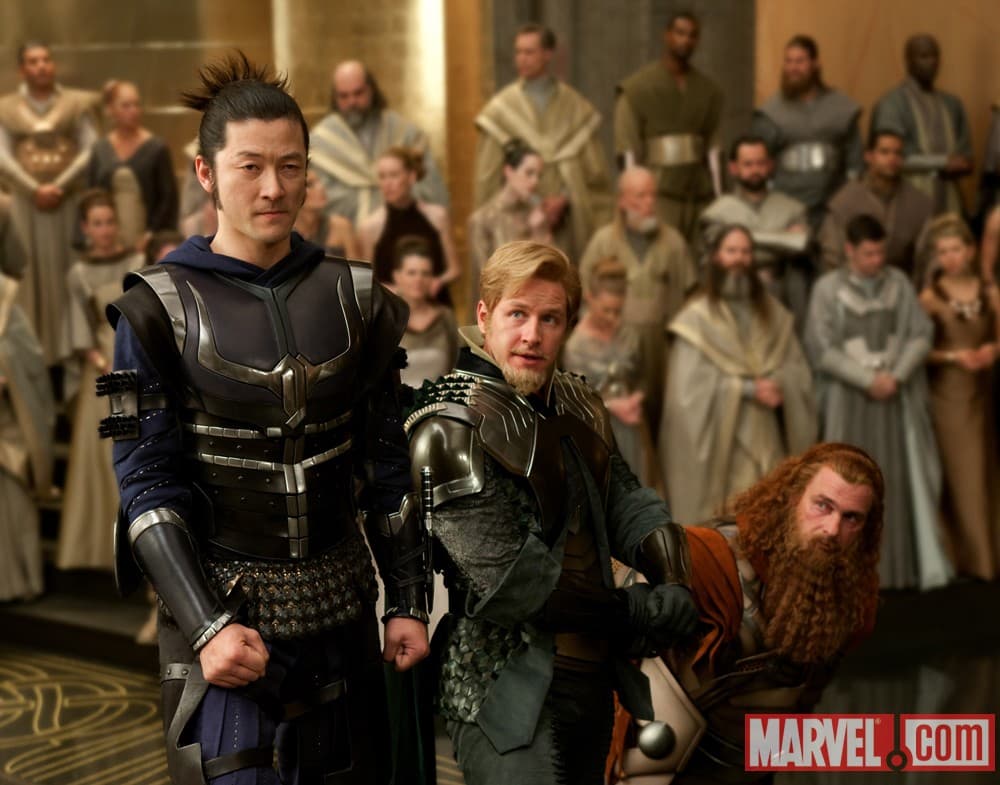 Las imágenes nos dan un vistazo a algunos de los personajes secundarios del film entre los que se encuentra Freya (Rene Russo), la madre de Thor lista para empuñar las armas en defensa del reino, Sif (Jamie Alexander) una de sus camaradas de armas (y potencial interés romántico para otros films) y Volstagg (Ray Stevenson) miembro de los Tres Guerreros, que luce considerablemente menos voluminoso de lo que anticipábamos.