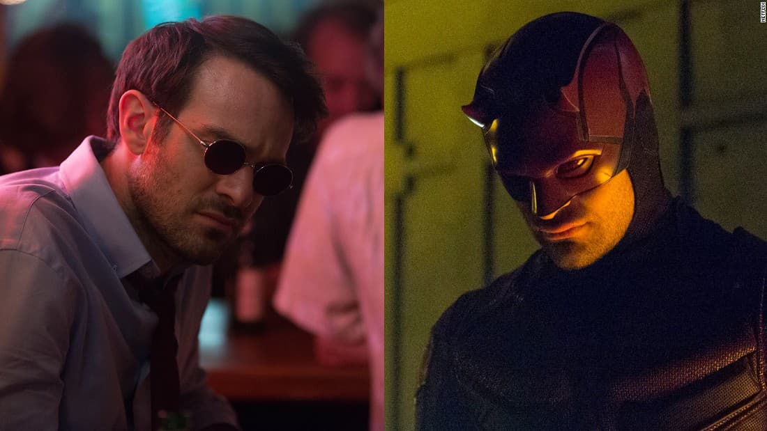 En este caso, tanto el alter ego como el superhéroe (según la versión del traje) usan lentes. Con la particularidad de que son anteojos de ciego, ya que Matt Murdock quedó invidente producto de la exposición a la radiación.