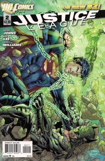 Una de las reglas para pertenecer a la Liga de la Justicia debería ser no enfrentarte a otros miembros del equipo. Esta rivalidad llevó a Linterna Verde a los extremos, intentando encadenar a ambos superhéroes para que no se pelearan. No resultó muy bien.