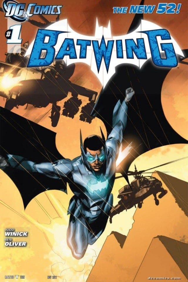 Mientras que Black Lightning apareció por primera vez en los cómics en el 77, Batwing tiene una historia más reciente. Batwing surgió en 2011, cuando Bruce Wayne le dio equipo y armamento a diferentes personas alrededor del mundo para que fueran los Hombres Murciélago de sus respectivas regiones. En África, el elegido fue David Zavimbe y su sucesor actual es Luke Fox.