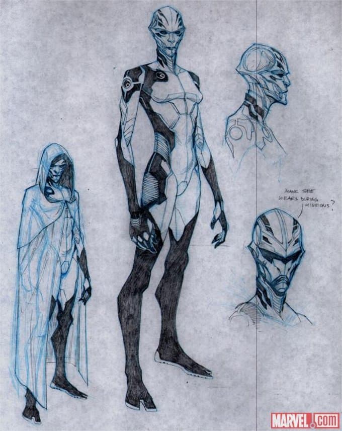 Entre las novedades que Marvel dejó entrever para la salida de Infinity en agosto, sobresale la aparición de dos nuevos personajes: Supergiant, diseñado por Jerome Opena, y Proxima Midnight gestada por el mismo Jonathan Hickman. Jerome Opena es reconocido por el trabajo que actualmente viene realizando en New Avengers y ha estado a cargo de diseñar otros personajes de la serie como Black Dwarf y Ebony Maw.