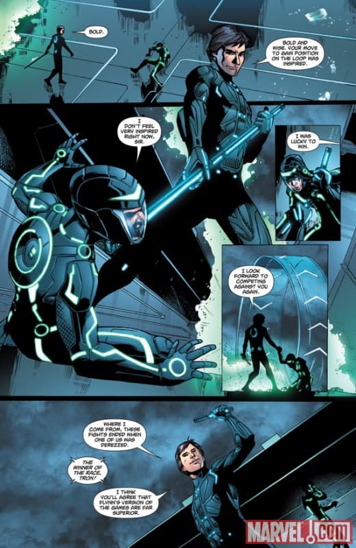 Tron Legacy será uno o el film más grande del año en lo que a taquilla se refiere y sin embargo la historia tiene mucho más para contar de lo que se verá en el cine y es allí donde esta novela gráfica de dos partes entra en acción. Escrita por Jai Nitz y dibujada por Andie Tong, esta historia mostrará que le sucedió a los personajes de la película original durante el interín entre ambos films y también nos dará una excelente aventura de acción ambientada en un universo digital donde todo es posible.