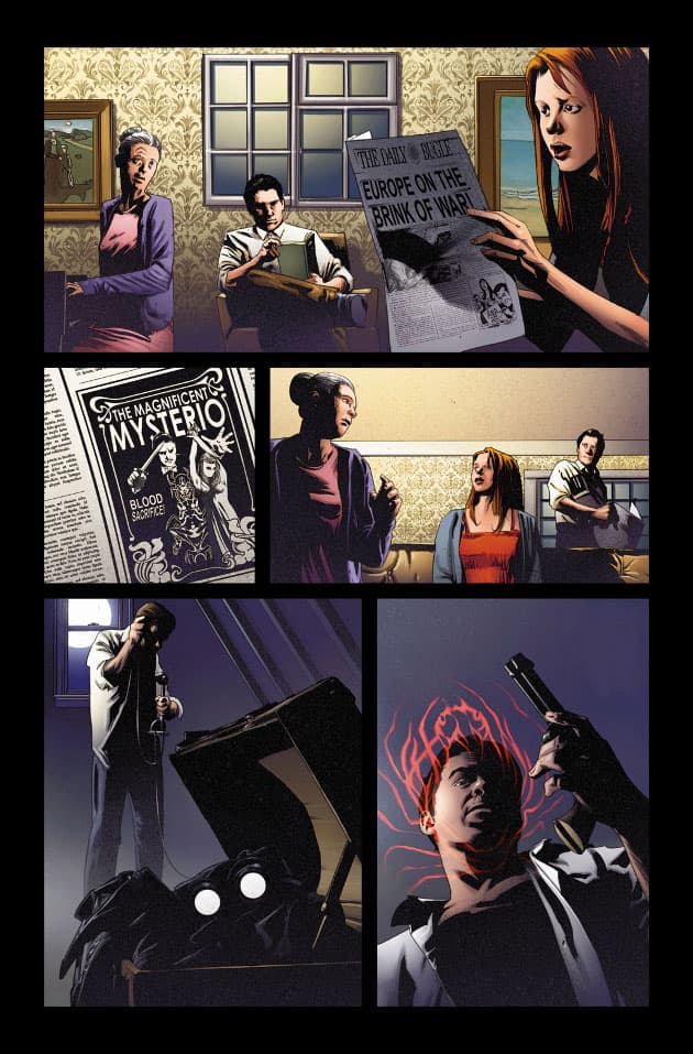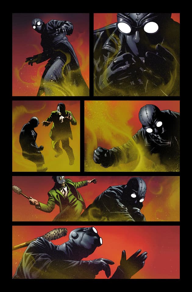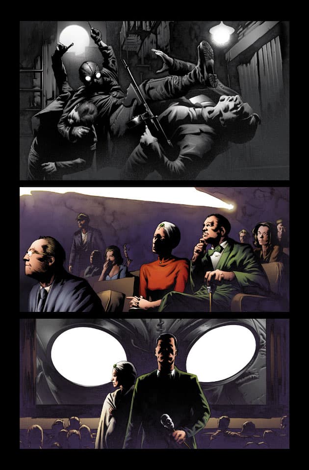 Las cosas tomarán un giro inesperado para nuestro héroe cuando Otto Octavius lo reúna junto a otras 37 versiones del Hombre Araña. De todas formas vale aclarar que la gran parte de Edge of Spider-Verse #1 ( Al Filo del Spider-Verso) transcurrirá en el escenario habitual del personaje, los años 30 y en un combate mortal con Mysterio.