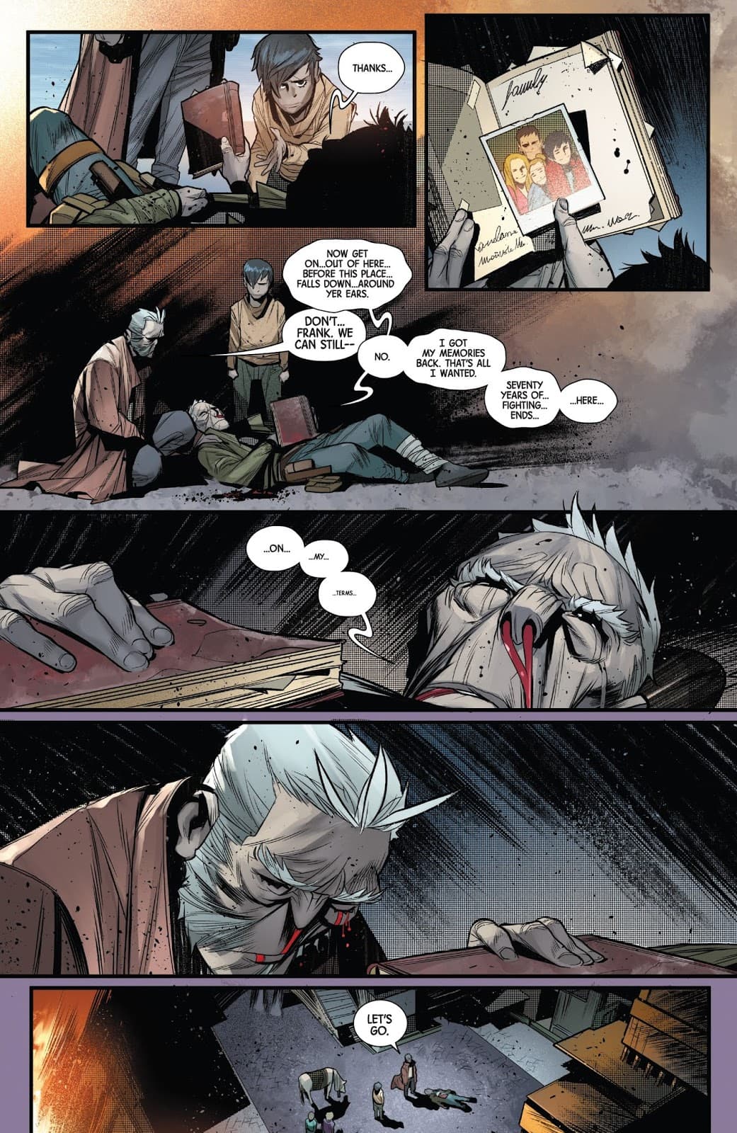 El libro es abierto y desde sus páginas cae una foto destastada pero vigente. La familia Castle sonreía ante la cámara, mucho antes de la tragedia que daría origen a The Punisher. Ese pasado feliz que había sido arrebatado y sirvió de combustible para tanta sangre en revancha y resarcimiento significó muchísimo más en su lecho de muerte.