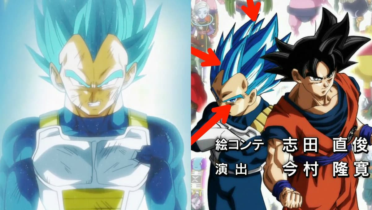 Imagen actual de Vegeta SSJB vs. Imagen del nuevo SSJB en el ending