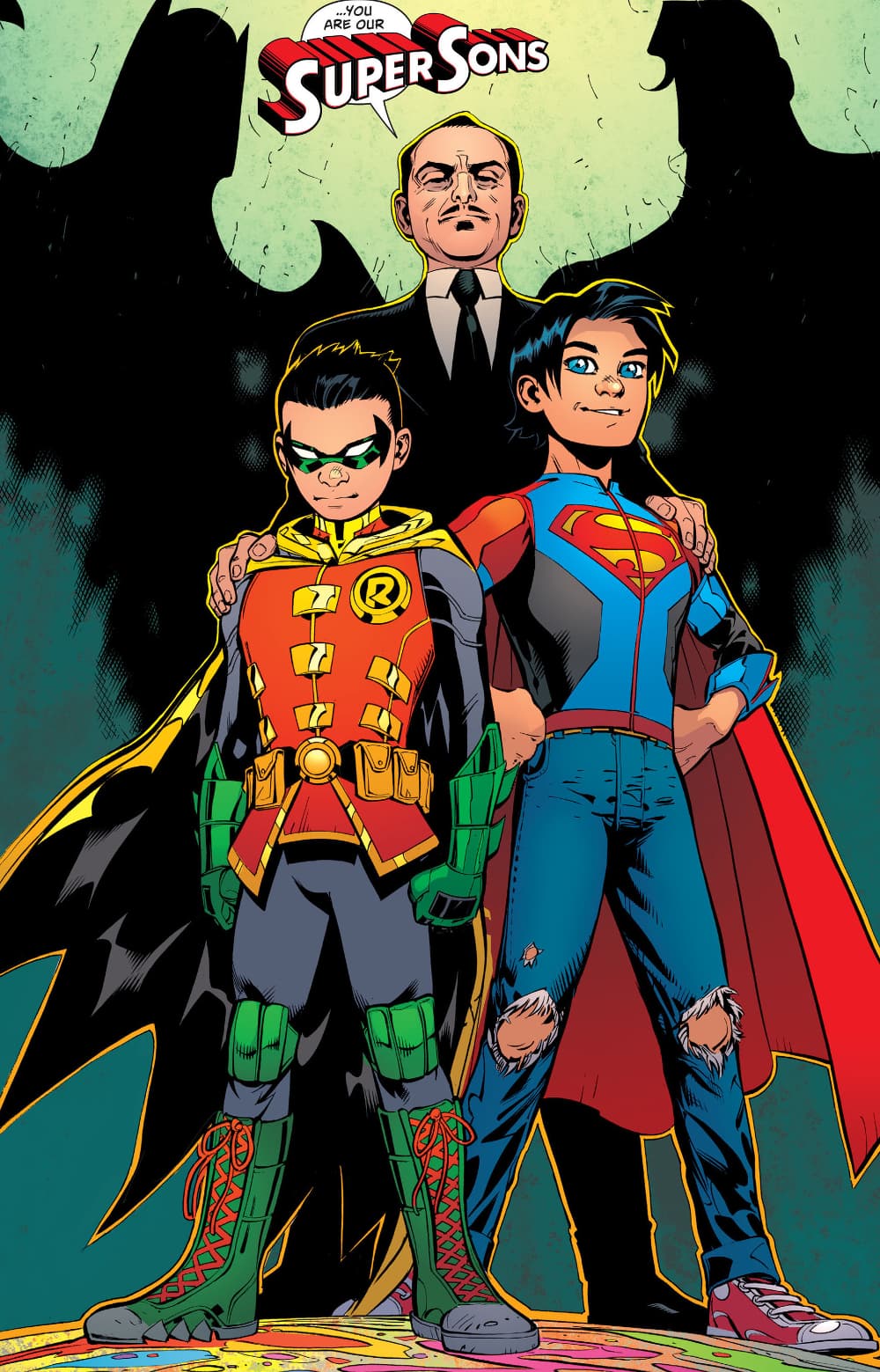Tras superar todas las adversidades, los super-hijos (SuperSons, título de una de las serializaciones más esperadas por los fans) son presentados y, supuestamente, una amistad eterna ha nacido... bueno, por lo menos durante un par de viñetas más, ya que en la página siguiente las jóvenes promesas de DC comienzan a pelear a muerte a raíz de un chiste que Jon le hace al intolerante de Damian.