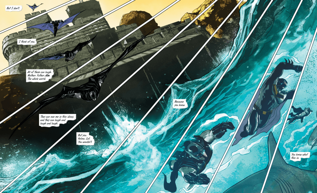 A medida que Batman se mueve y neutraliza a sus enemigos, un relato es contado mediante la voz (narrativa) de Bruce. Se trata de una carta que le escribió a Selina Kayle ( Catwoman) hace un tiempo, un mensaje que fue mucho más allá de una simple actualización de estado o saludo casual: fue una confesión.