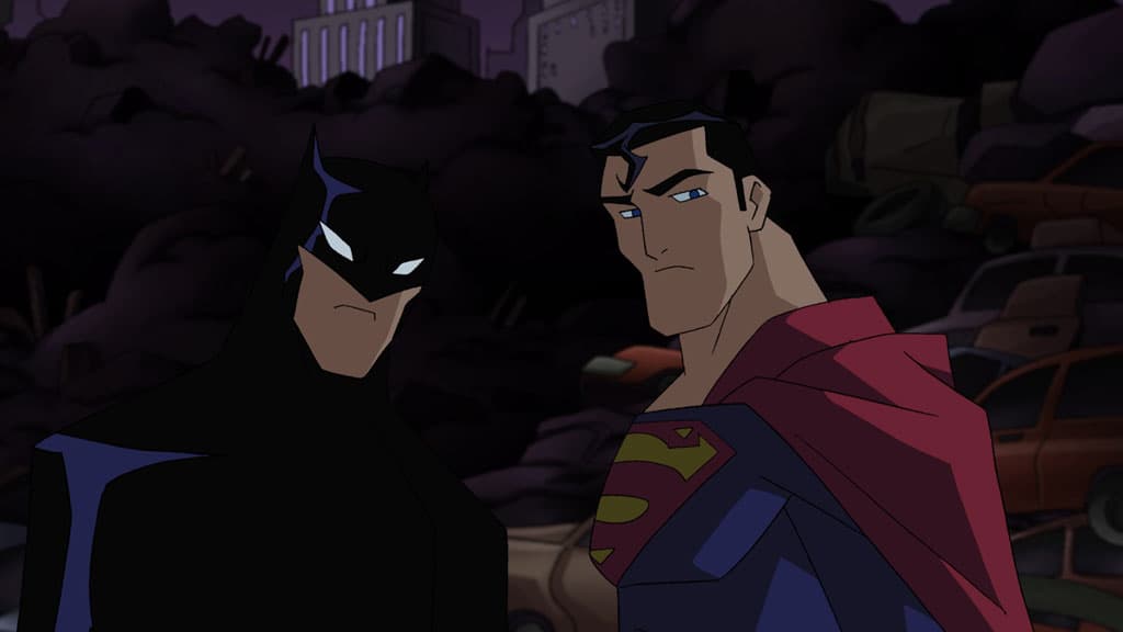 La continuidad es diferente en el mundo animado y el primer encuentro entre el hombre de acero y el caballero oscuro se llevó a cabo en un episodio de tres partes titulado World’s Finest. Los tres episodios se estrenaron originalmente uno detrás de otro en forma de película el 4 de octubre de 1997. Escrita por Alan Burnett y Paul Dini, la historia muestra la clara diferencia ideológica entre optimismo y pesimismo que los héroes poseen, pero también el viaje que los lleva a limar las asperezas y salvar el día. Un clásico.
