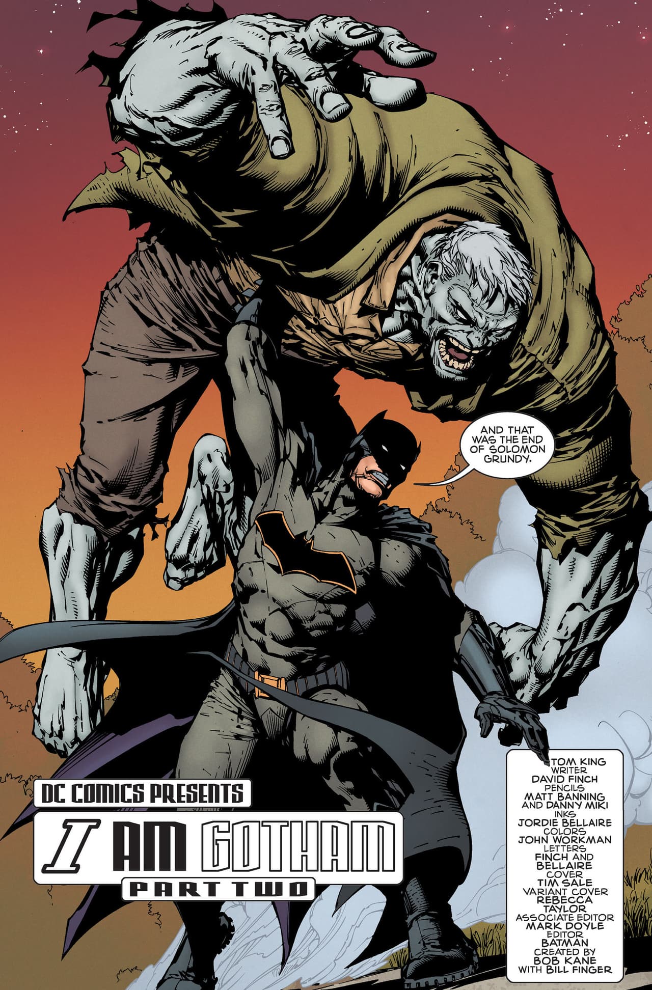 King nos lleva a un ritmo increíble para encontrarnos con el descubrimiento final que deja un desenlace quizás cerrado pero genera ansias por leer el siguiente número. La labor de los ilustradores no es excepcional sino adecuada, salvando un par de paneles realmente bien realizados (como uno en la primer escena, donde Batman levanta sobre su cabeza el masivo cuerpo de Solomon Grundy para luego golpearlo contra el suelo); Finch y Banning no tuvieron en este número oportunidad para lucirse, tarea que retomarán seguramente en el próximo book.