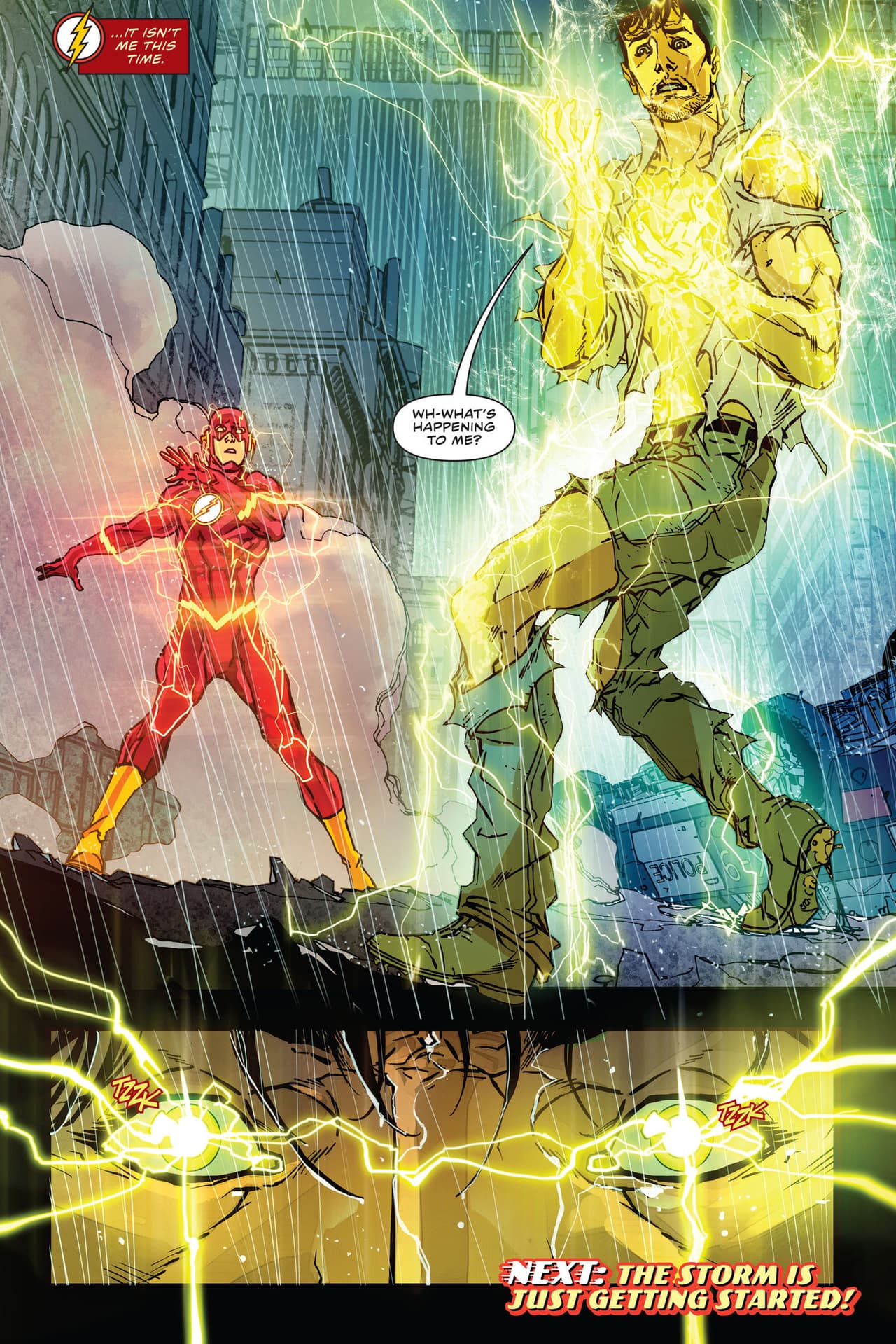 Williason pone a Flash en una clásica encrucijada heroica al final del book, mientras Di Giandomenico desarrolla un caótico orden de panel para enfatizar lo difícil que es para el corredor escarlata solucionar dos problemas que están ocurriendo en simultaneo. Barry logra salvar a las personas que quedan atrapadas en un edificio en llamas pero llega tarde a ayudar a su amigo August Heart, y presencia de esa manera cómo un rayo lo golpea mientras intenta evitar un robo por parte de la organización Black Hole.