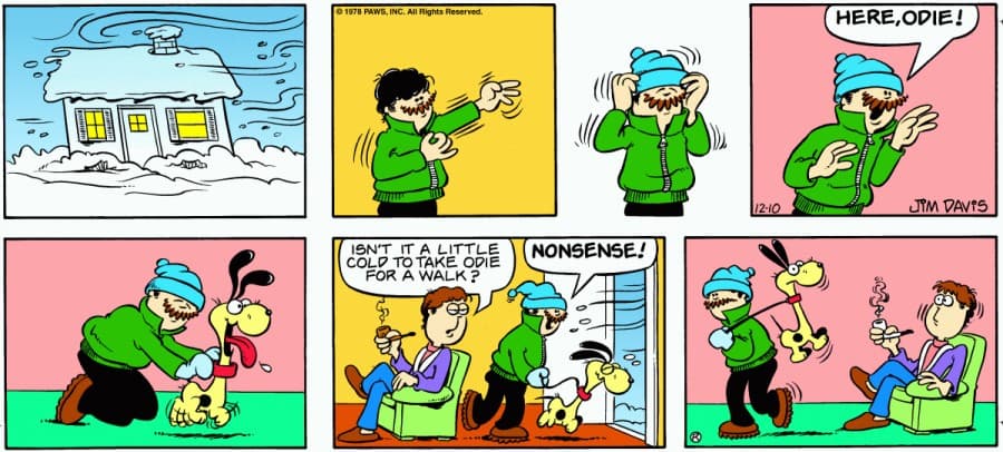 JON: ¿No está un poco frío para sacar a caminar a Odie?