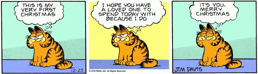 Yendo en contra de su naturaleza, Garfield le desea una feliz navidad al lector después de insinuar que lo quiere y que es una persona especial para él.