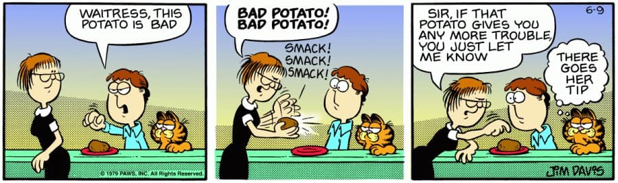 Esta fue la primera vez que se empleó este chiste (búsquenlo en un calendario, fue un lunes); al ser una tira diaria, este chiste se usó varias veces, volviéndose un clásico.