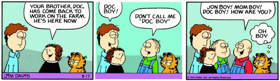 *Doc Boy puede traducirse también como “Doc Muchacho”, una manera afectuosa para referirse a alguien muy joven (un niño); por eso a Doc Boy no le gusta que lo llamen así. El chiste pierde su gracia si se lo traduce, ya que Papá Arbuckle le dice “muchacho” a todo el mundo.