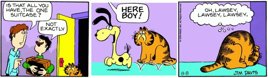 Esta es la primera de una de las pocas tiras en las que Garfield no aparece en ningún momento; Davis prácticamente ha dejado esa práctica por una petición de su editor.