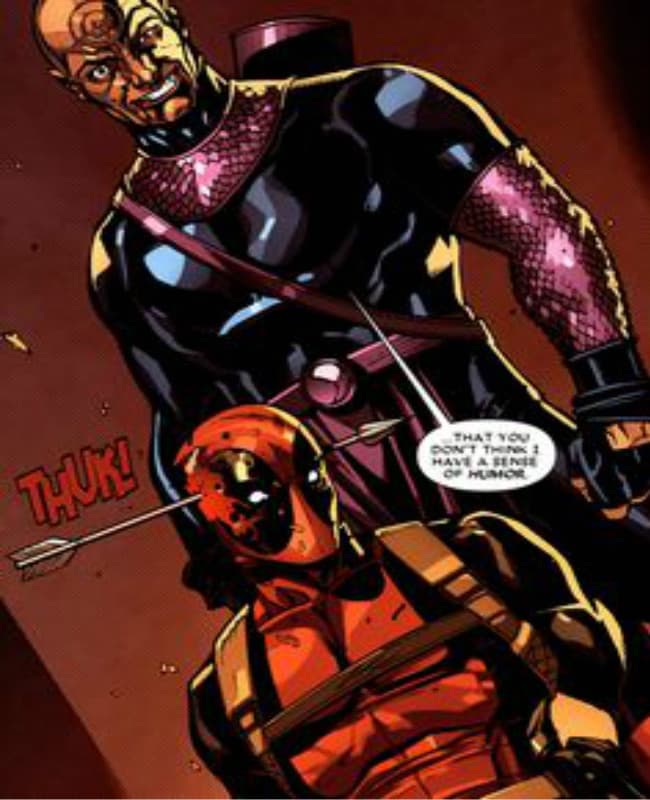 Y Deathstroke, de quien se tomó la idea principal del personaje (en apariencia y nombre). Es de DC Comics y no de Marvel, pero existe el crossover también y es tan épico como lo imaginas.