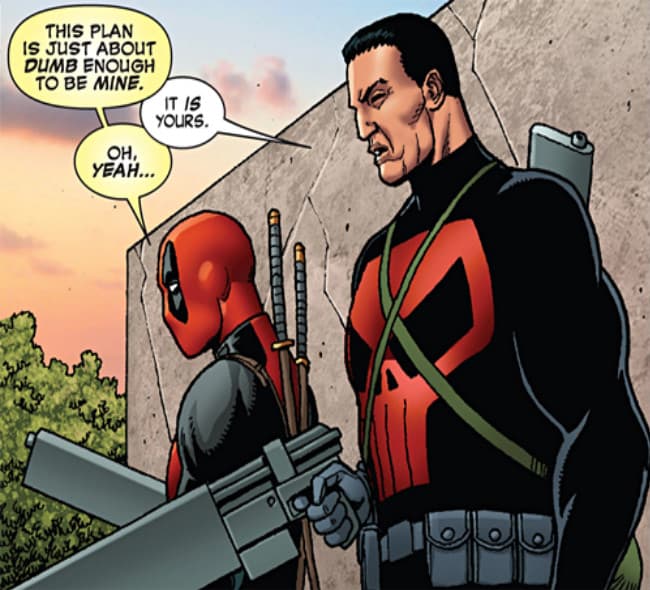 Popular por tener ese temperamento de no dejar vivos a los criminales. ¿Eso es mejor que solo arrestar o golpear ligeramente, no? Les ha tocado trabajar juntos a él y a Wade Wilson, pero The Punisher ha estado con el contrato en las manos para capturar a Deadpool. Imagino que debe ser complicado intentar matar a alguien que constantemente se regenera. Además, el humor de Deadpool no se lleva con la seriedad de Frank Castle.