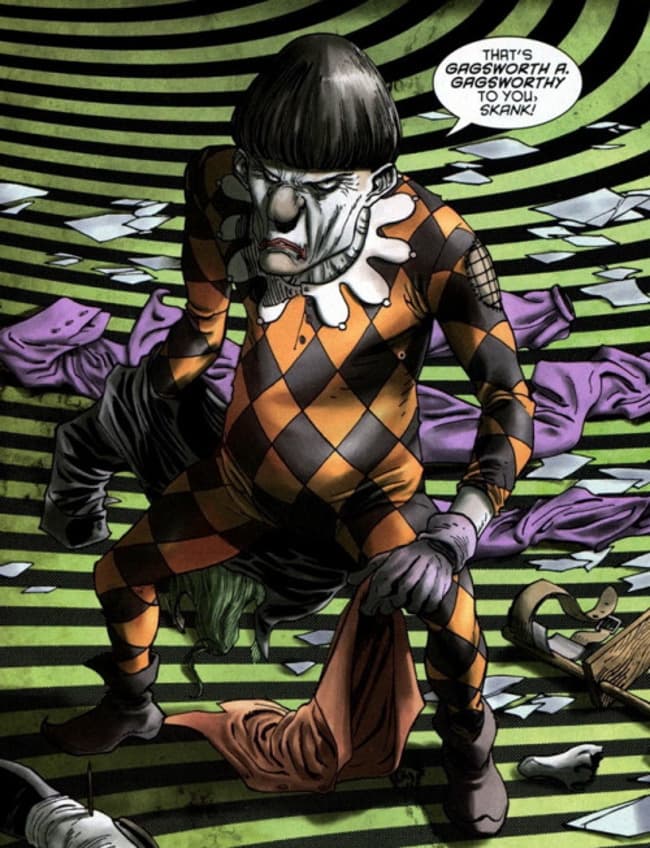 Gaggy era un excelente enano malabarista de circo, pero termina siendo relegado a payaso e integrante de feria de fenómenos gracias a que el mismo circo contrata a la familia Grayson (sí, la misma de Robin). Es entonces donde lo descubre Joker y comienzan toda una carrera criminalística.