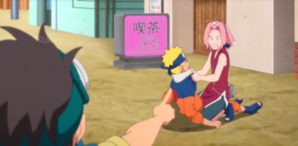 Sakura fue muy dura con Naruto cuando eran niños, lo regañaba e incluso lo golpeaba casi a la menor provocación.