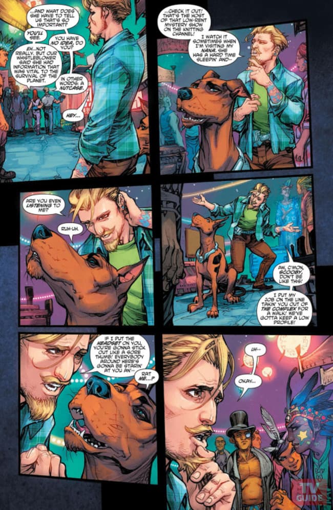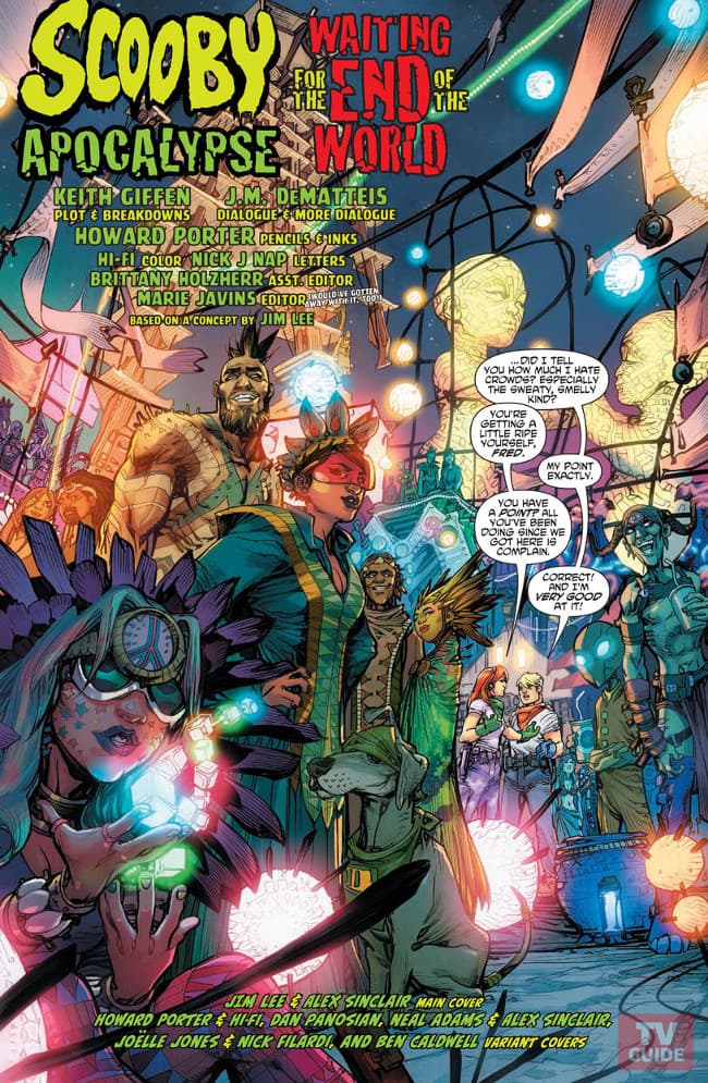 En los últimos días fueron reveladas las primeras páginas (2-6) del cómic de lanzamiento que se titula Scooby Apocalypse #1, Waiting for the End of the World. Hay poco que se puede deducir de estas primeras páginas, aunque sabemos de ante mano que se trata de una historia de origen. Scooby y Shaggy parecen ya ser mejores amigos cuando la historia inicia. De la misma manera, Fred y Daphne ya se conoce y trabajan juntos en lo que Fred describe como un programa televisivo con severos problemas de raiting. Y Vilma parece conocer de alguna manera, aunque más indirecta, a Shaggy y Scooby (no queda bien especificado) y por lo demás, la más inteligente del grupo parece estar por su cuenta.